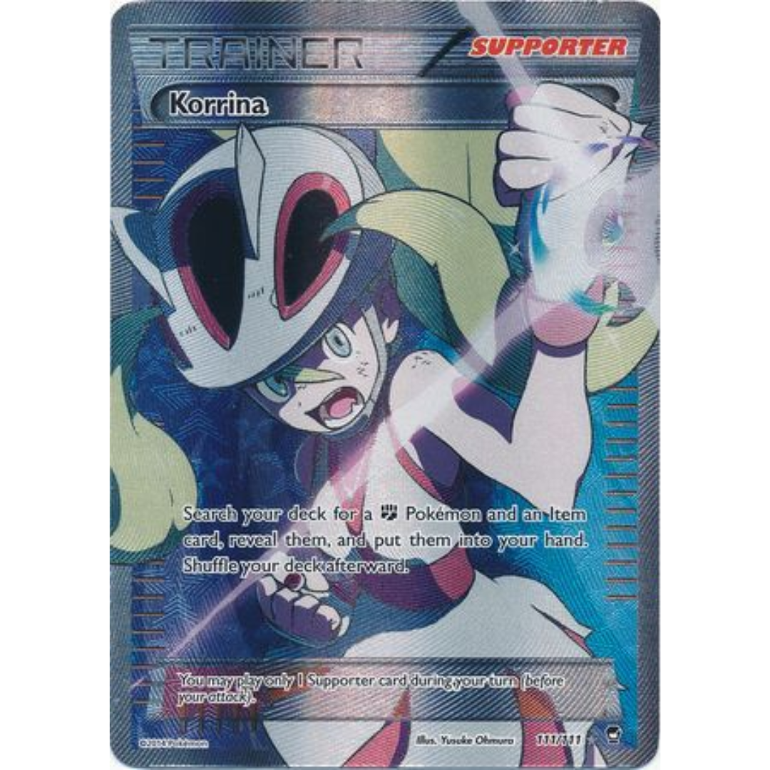 La carta Corelia es una carta de Entrenador Partidario en español en el juego de cartas coleccionables de Pokémon. Esta carta permite al jugador buscar en su mazo un Pokémon de tipo Lucha y una carta de Objeto, revelarlos y ponerlos en su mano. Después, el jugador debe barajar su mazo. Este efecto es muy útil para los mazos centrados en Pokémon de tipo Lucha, ya que permite acceder a recursos específicos rápidamente, optimizando el flujo del juego y preparando estrategias ofensivas con cartas clave.